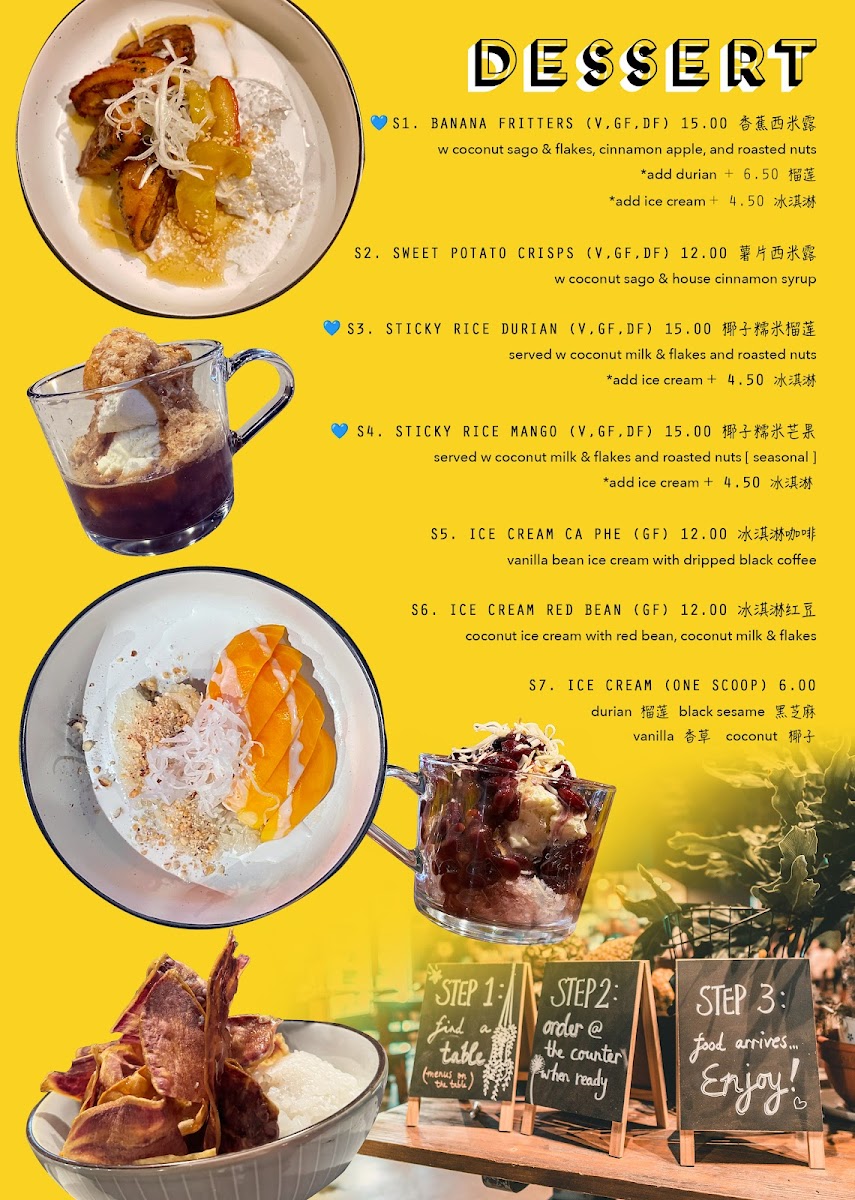 Gluten free, vegan. Dehydrated longan, coconut jelly with shaved ice.